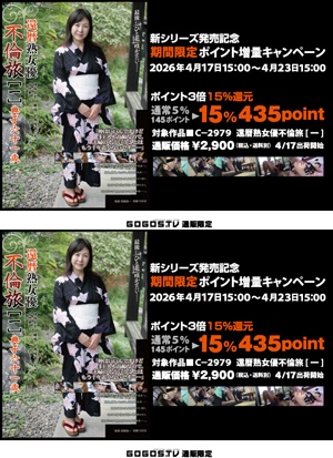4月24日発売の新シリーズ「還暦熟女優不倫旅 [一]」の発売を記念してDVD通販ポイント3倍キャンペーンを開催中!